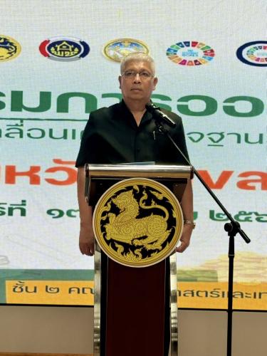 นางสาวรัตนา ไมสัน พัฒนาการจังหวัดสงขลา กล่าวรายงานว่า การส่งเสริม กลุ่มออมทรัพย์เพื่อการผลิต เป็นภารกิจสำคัญของกรมการพัฒนาชุมชนที่ดำเนินการมาตั้งแต่ปี พ.ศ. 2517 เพื่อส่งเสริมให้ประชาชนรวมตัวกันออมเงินตามศักยภาพของตนเอง สร้างหลักประกันและภูมิคุ้มกันทางเศรษฐกิจให้ครัวเรือน สามารถต่อยอดสู่การพัฒนาอาชีพและสวัสดิการของชุมชน พร้อมทั้งแก้ไขปัญหาหนี้สินและยกระดับคุณภาพชีวิตของประชาชน ตามแนวทางเศรษฐกิจพอเพียง